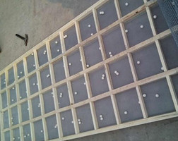 2、將新的細網平鋪在母網上,重新將上框放回原位,用手拉緊四周的細網,在振動篩的對邊兩端上框與下礦的框緣處各有一把萬能鉗,將上框與下框夾緊。